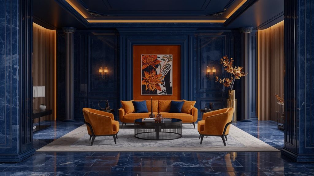 If you love bold and modern interiors, this is one of the best colour combination for house designs that makes a strong statement. Deep sapphire blue adds depth and elegance, while bright citrine orange brings energy and warmth to the space. Use sapphire on feature walls or larger surfaces, then add pops of orange through cushions, artwork, or décor pieces. This contrast creates a lively, stylish look that feels fresh, confident, and full of personality.